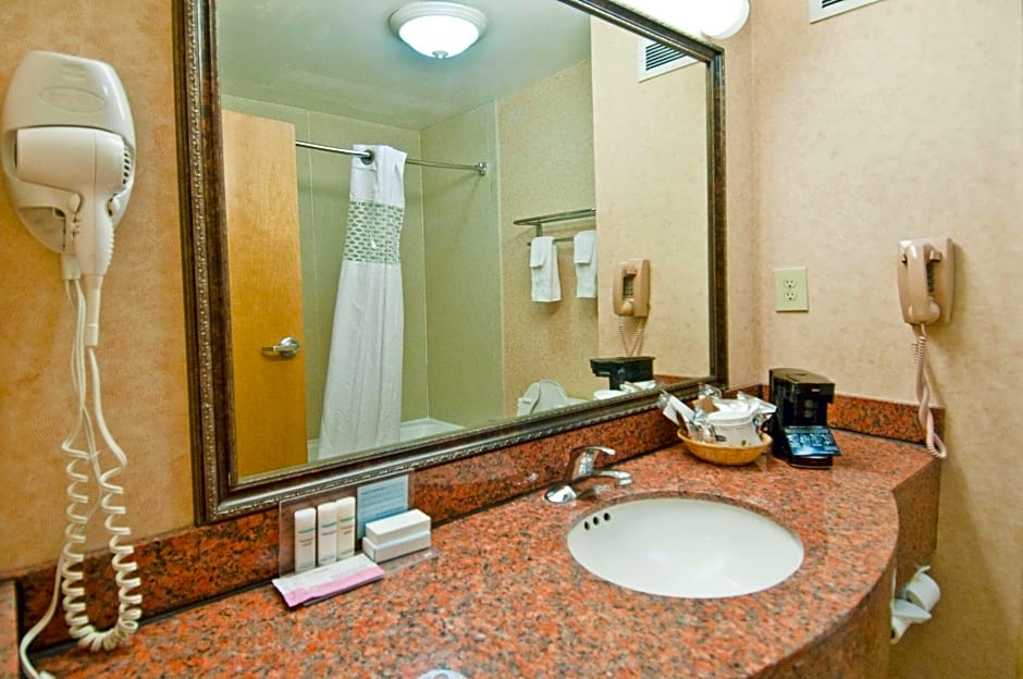 This mobility and hearing accessible, nonsmoking room features one king sized bed , and an accessible bath tub. The room also has a visual alarm and notification devices for the doorbell or door knock and incoming phone calls. The room features comfortable soft seating, microwave, refrigerator, a HDTV, and easy to operate alarm clock/radio. The free high speed internet access will help you stay connected while on the road. If you prefer not to work at the desk, you can use the convenient lapdesk instead. You'll also enjoy the convenience of having a coffee maker with tea service and iron/ironing board in your room.